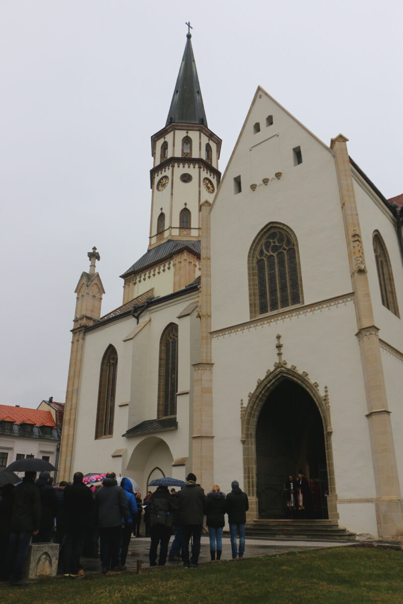 Sprievod sa presunul k Bazilike sv. Jakuba, kde kapláni rímskokatolíckej farnosti čítanie a slová venovali téme: „Veru hovorím ti: Dnes budeš so mnou v raji.“ Lk 23,43