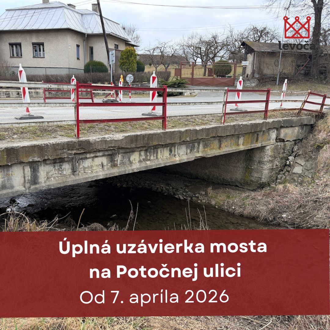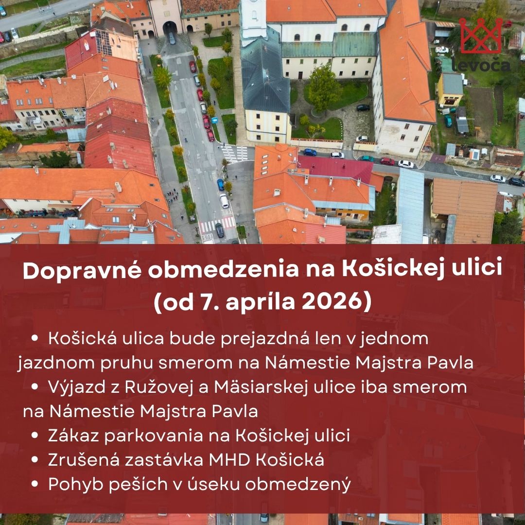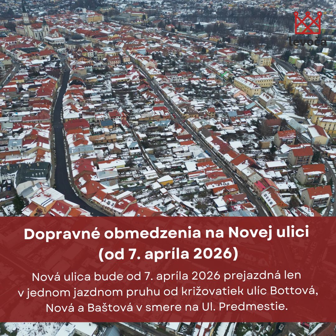 Mesto Levoča informuje obyvateľov a návštevníkov mesta o zmene dopravného režimu na uliciach Potočná, Košická a Nová od utorka 7. apríla 2026 z dôvodu pripravovaných a prebiehajúcich stavebných prác.