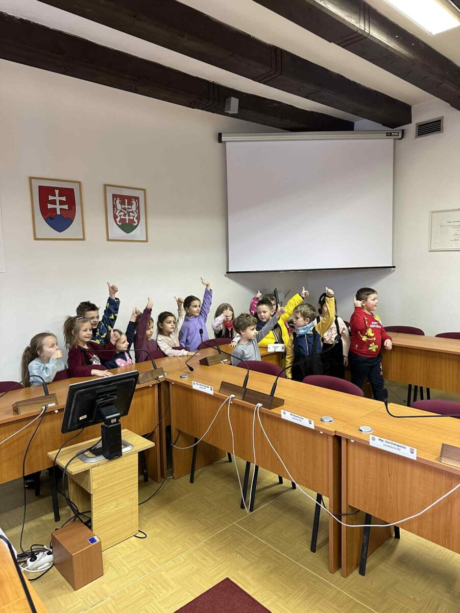 Spoločne sme si pozreli priestory mestského úradu, nazreli do kancelárie primátora, zasadacej miestnosti Mestského zastupiteľstva a nechýbal ani pohľad na historické fotografie nášho mesta.