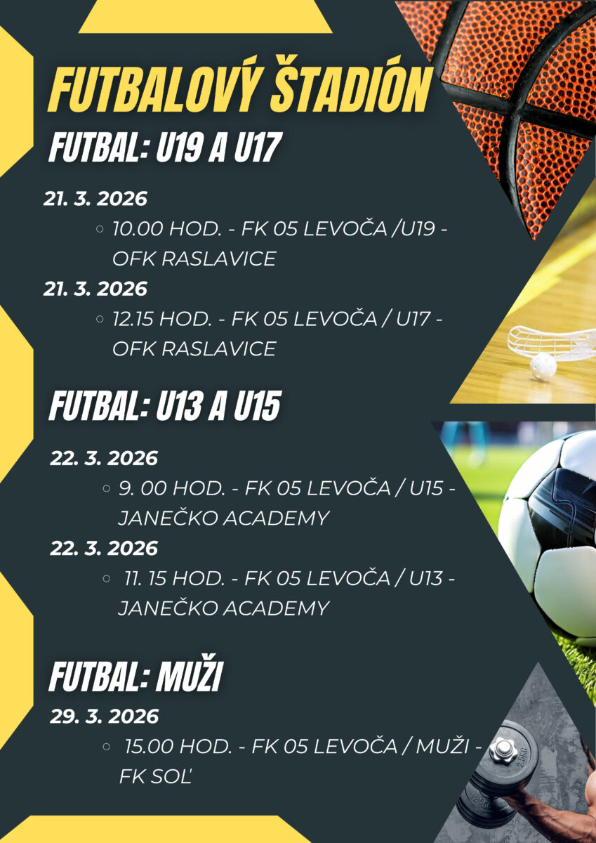 - Futbal – od mládežníckych kategórií U13, U15, U17, U19 až po mužov