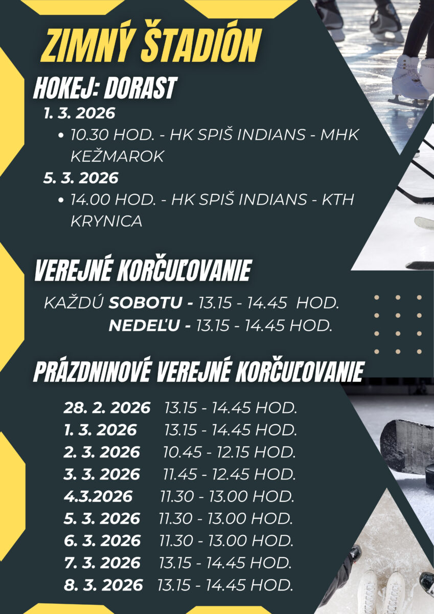 - Verejné korčuľovanie každú sobotu a nedeľu + prázdninové termíny