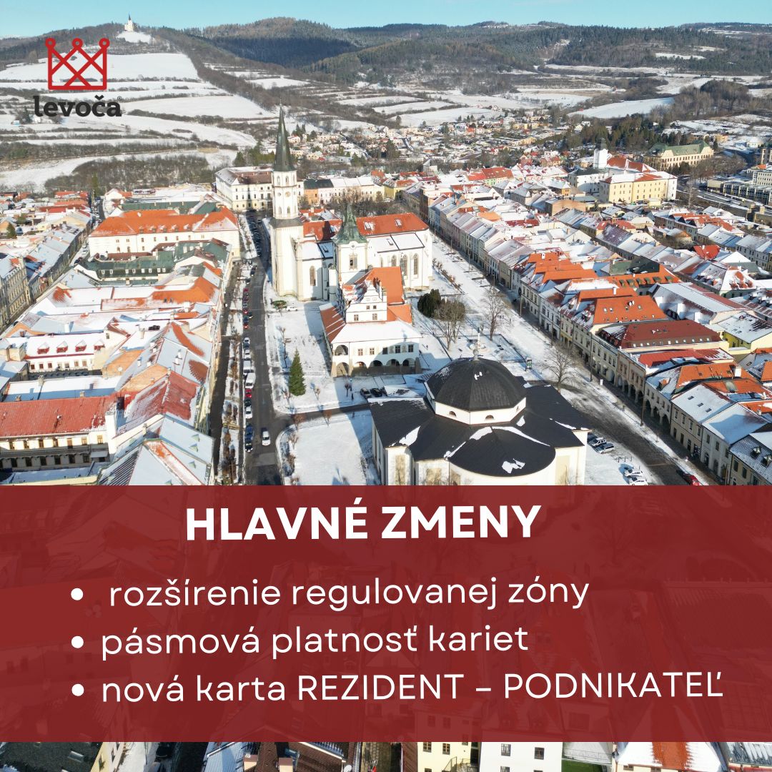 Mesto Levoča informuje obyvateľov a návštevníkov mesta o pripravovanom rozšírení a zmenách pravidiel regulovaného parkovania v centrálnej mestskej zóne, ktoré vyplývajú z nového Všeobecne záväzného nariadenia (VZN) o regulácii parkovania.