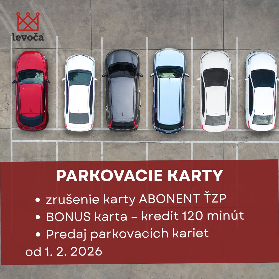 Zakúpenie parkovacích kariet bude možné taktiež od 1. 2. 2026.