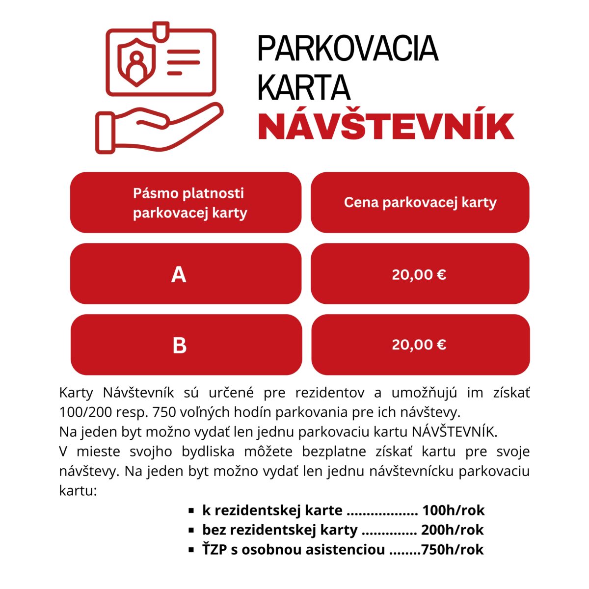 - zavádza sa pásmová platnosť kariet REZIDENT a NÁVŠTEVNÍK