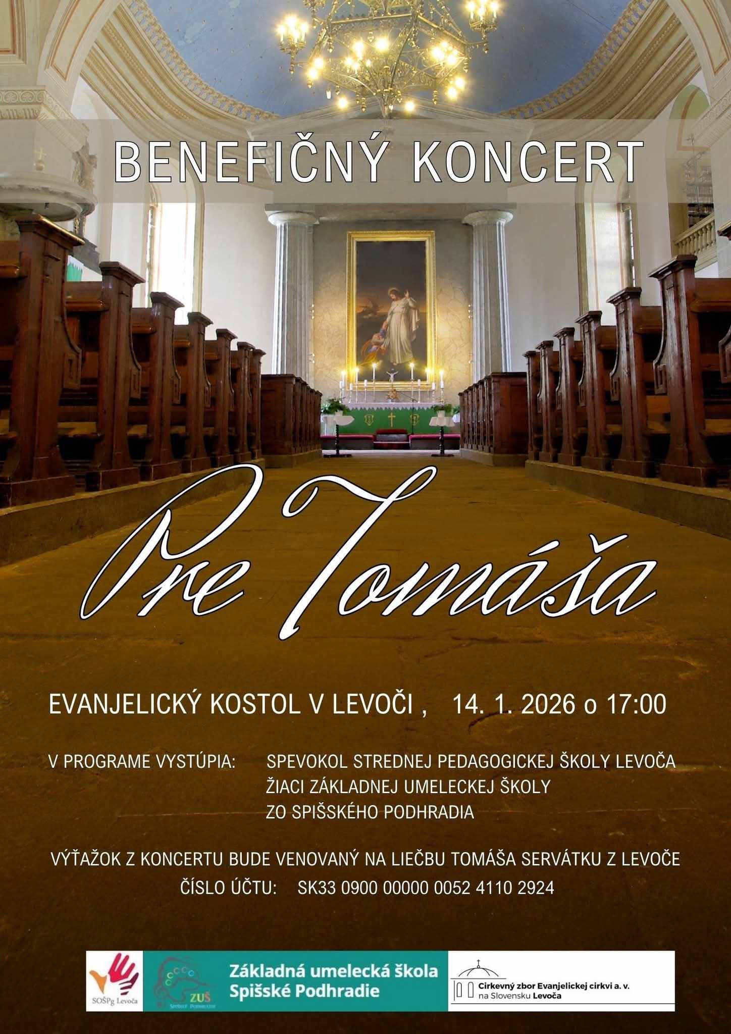 Pozývame vás na benefičný koncert pre Tomáša, ktorý sa uskutoční v krásnych priestoroch Evanjelického kostola v Levoči.