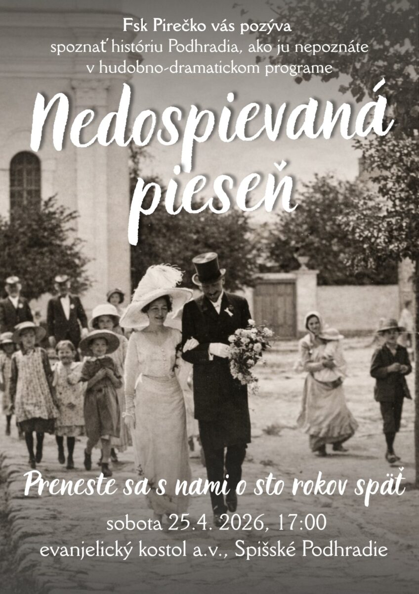 „Nedospievanú pieseň“: predstavenie Fsk Pirečko, ktoré pripravuje 25.4.2026 v Spišskom Podhradí.