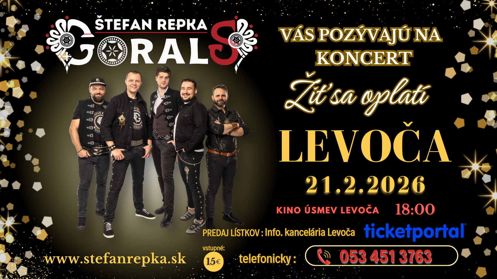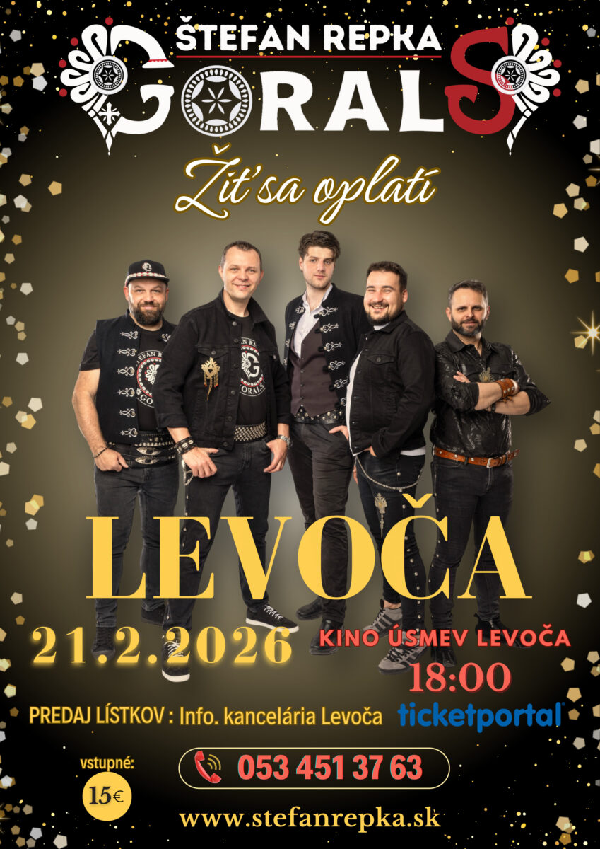 Štefan Repka spolu s kapelou GoralS prichádzajú do Levoče s koncertom Žiť sa oplatí, ktorý spája autorskú tvorbu, moderný hudobný výraz a silné korene goralskej hudobnej tradície.