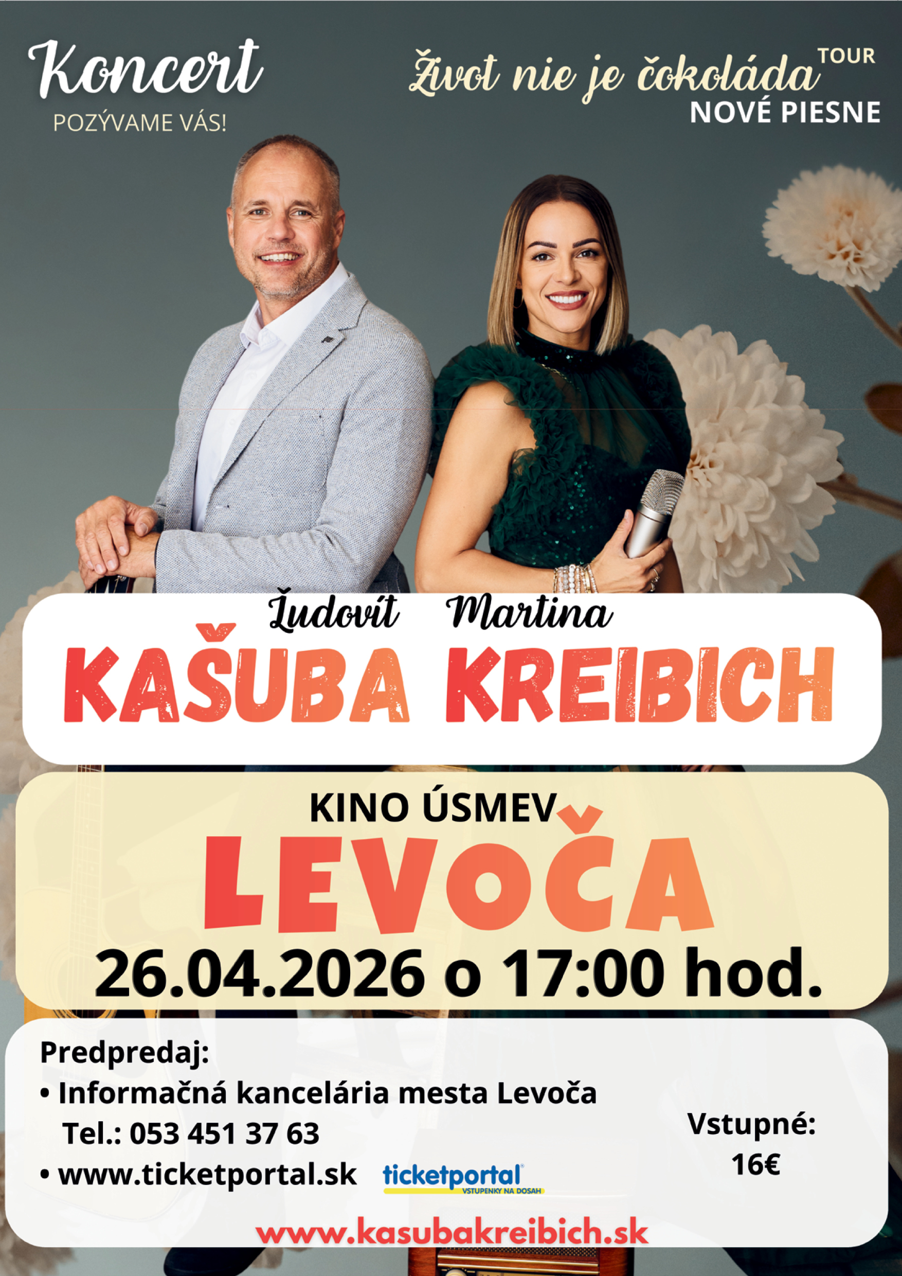 - online: ticketportal.sk – https://www.ticketportal.sk/event/Koncert-Ludovit-Kasuba-a-Martina-Kreibich?idp=211855