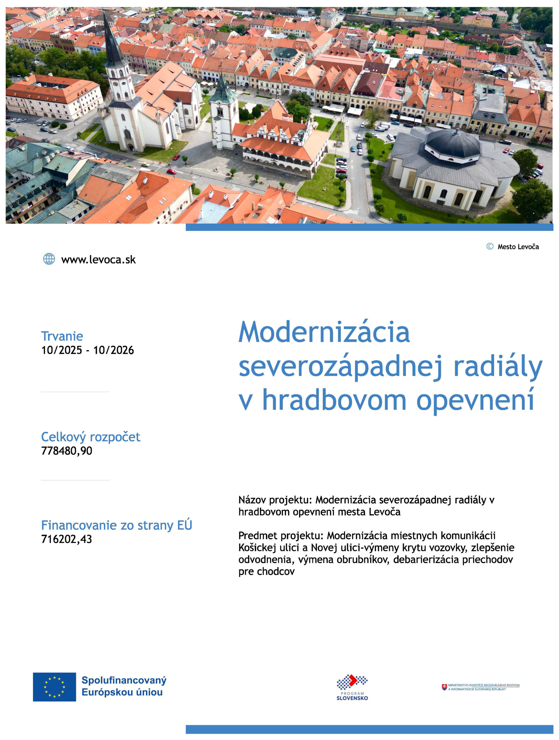 Výška spolufinancovania Mestom Levoča – 62 278,47 eur