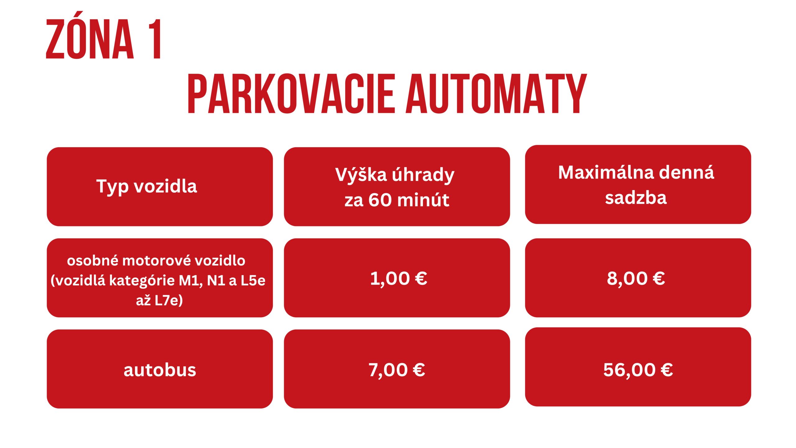CENNÍK PARKOVNÉHO V ZÓNE 1 PÁSME A