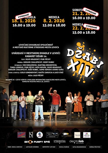 Levočská divadelná spoločnosť a Mestské kultúrne stredisko mesta Levoča prinášajú do Mestského divadla kabaret DŽABI 14 – najnovší diel legendy, ktorá už roky prináša humor, hudbu a energiu, čo vám zdvihne náladu aj v najväčšom zimnom zhone.